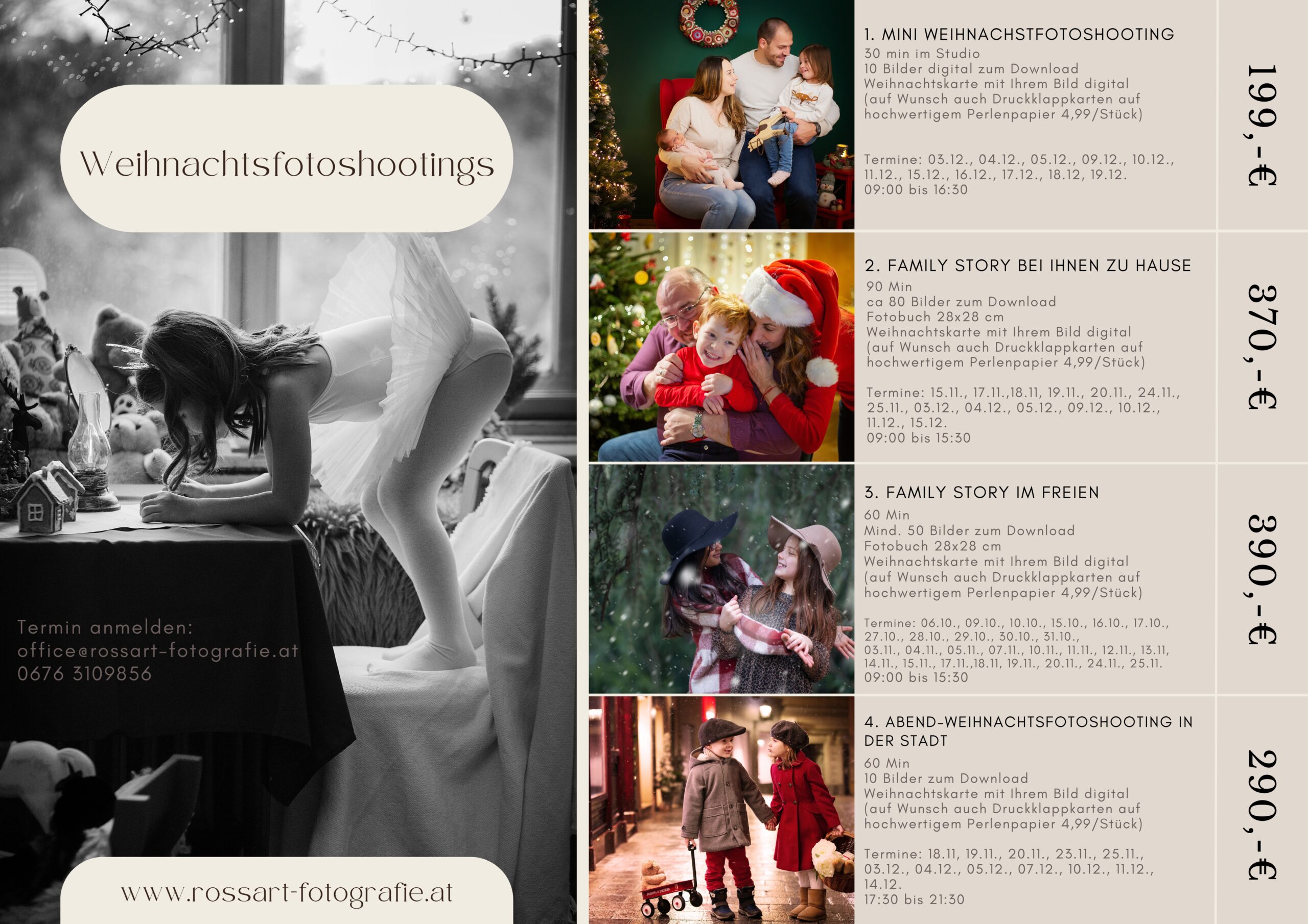 Die Weihnachtsstimmung liegt bereits in der Luft, und wie könnte man diese magischen Momente besser festhalten als bei einem warmen und gemütlichen Fotoshooting? Ob Sie die Gemütlichkeit Ihres Zuhauses, die märchenhafte Atmosphäre der Lichter Wiens oder den Zauber der Winternatur bevorzugen, in jedem Fall habe ich etwas Besonderes für Sie. Ich freue mich darauf, gemeinsam unvergessliche Erinnerungen zu schaffen, die Ihnen bei jedem Anblick das Herz erwärmen werden.